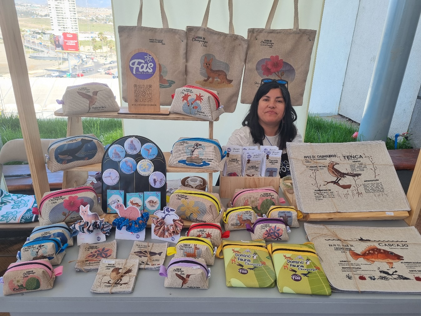 En Fas Creación y Diversión realizamos Ilustraciones y creaciones inspiradas en la flora, fauna e identidad de Chungungo, Comuna de La Higuera. Realizamos accesorios funcionales y únicos, hechos con sublimación, diseño propio y un profundo respeto por nuestro entorno costero. Cada pieza cuenta una historia local: chungungos, añañucas, aves y especies que nos rodean.